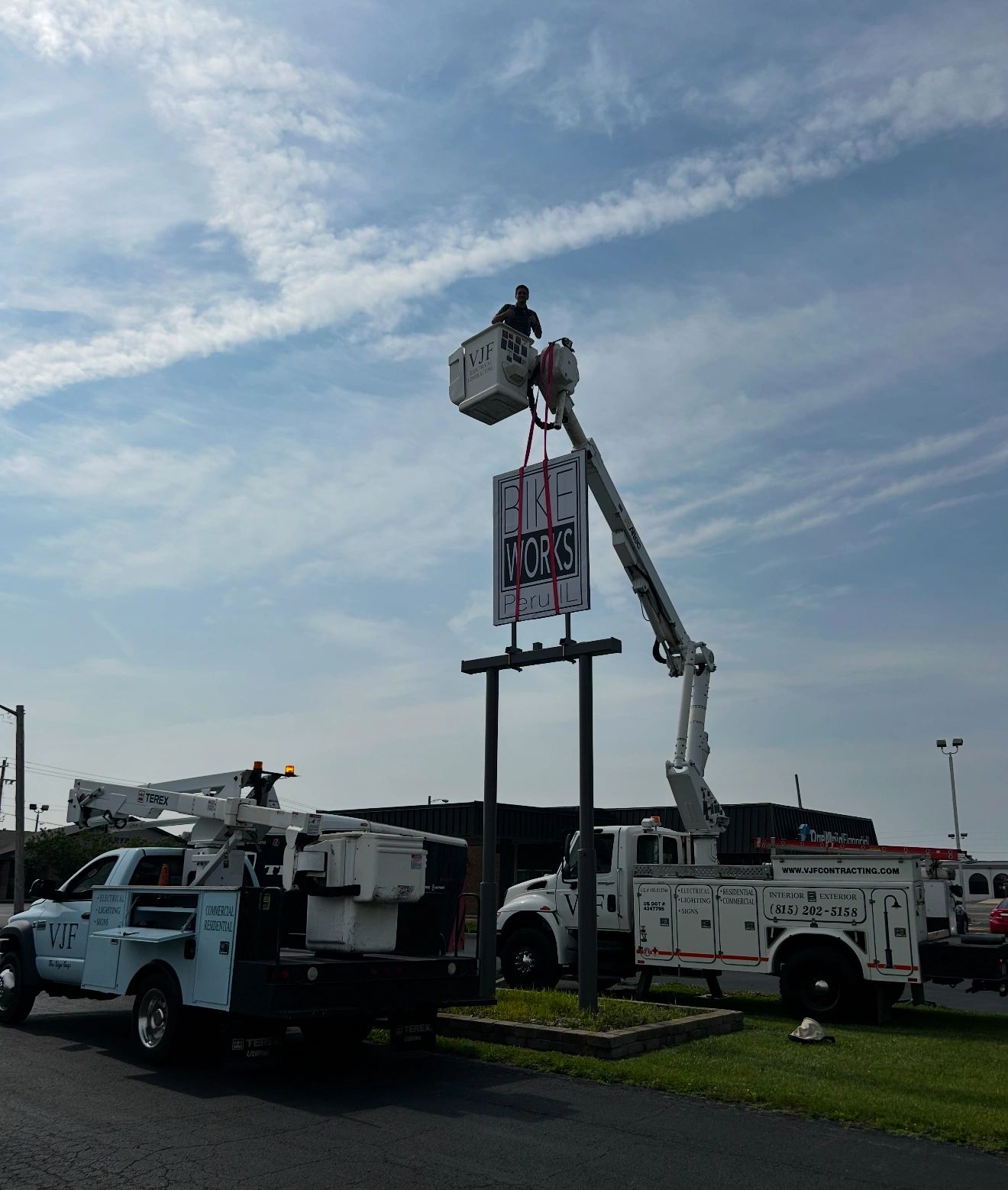 Welcome to VJF Signage, your one stop shop for new and existing signage installs and repairs. Our team is filled with licensed electricians, fabricators, and installers ready to assist with any project your business has.